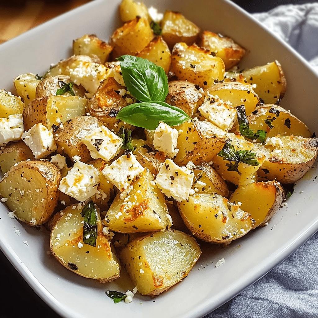 If you enjoy a bit of heat, consider adding diced chili peppers to the potatoes before roasting or mixing hot chili flakes into the feta topping for an extra spicy kick.