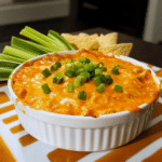 Buffalo Chicken Dip is the perfect appetizer for any occasion, combining the spicy, tangy flavors of buffalo sauce with creamy cheese and tender chicken. Whether you’re hosting a party, enjoying a casual gathering, or simply craving a flavorful snack, this dip is sure to be a hit. With its bold flavors, creamy texture, and easy-to-make nature, Buffalo Chicken Dip will become your go-to appetizer. Enjoy it with your favorite dipping snacks, and watch it disappear in no time!