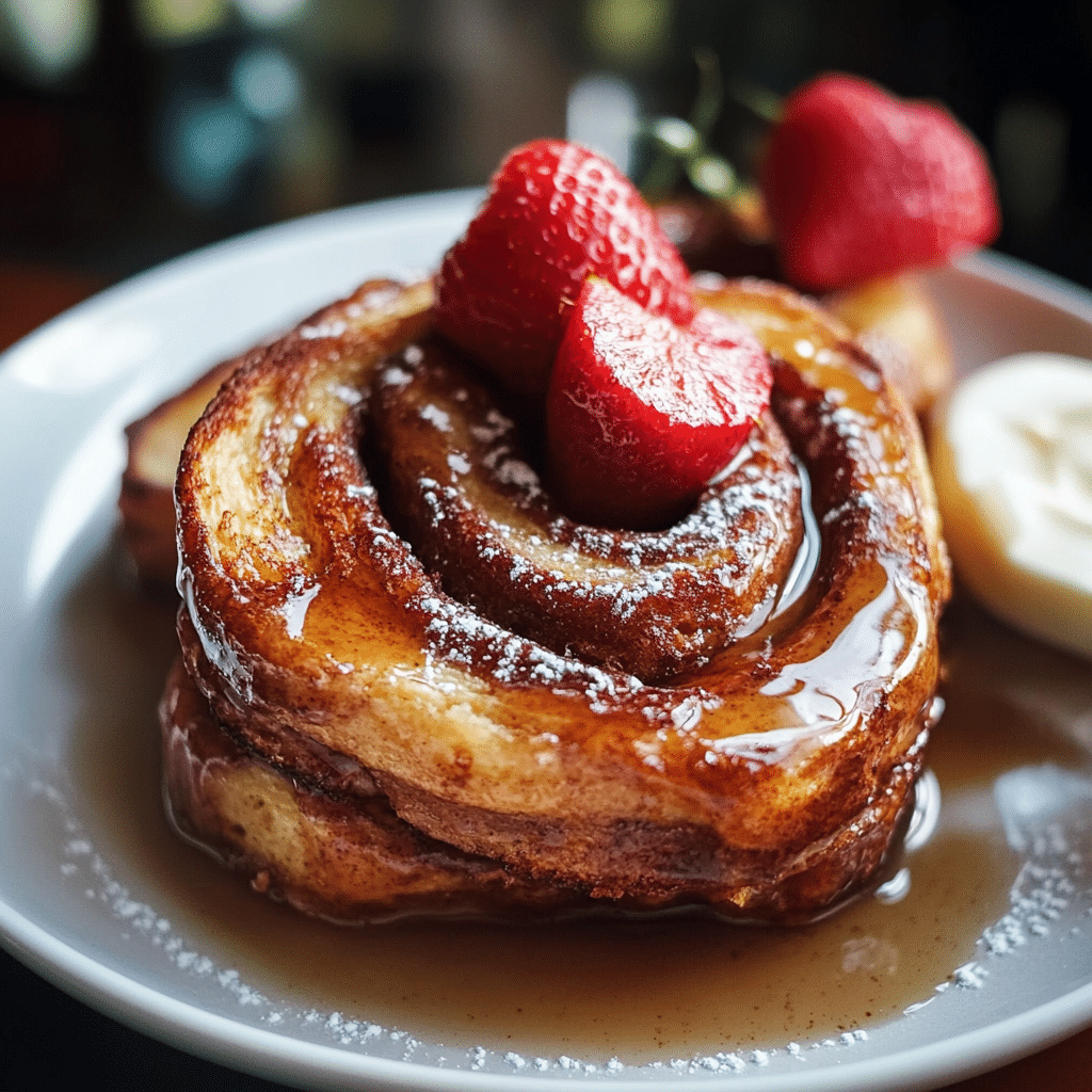 - Strawberry Cheesecake Cinnamon Roll French Toast: Top with fresh strawberries and a dollop of cream cheese frosting.