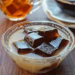 Coffee Jelly is a unique and refreshing dessert that combines the rich, bold flavor of coffee with a soft, wobbly texture. This dessert, popular in Japan, is made by dissolving coffee in gelatin or agar-agar and letting it set in the refrigerator. The result is a cool, firm jelly that’s perfect for coffee lovers who want to enjoy their favorite drink in a new form. It’s a light, fun treat that’s not only easy to prepare but also highly customizable with different toppings. Whether you’re looking for a dessert to beat the summer heat or simply a unique way to enjoy coffee, Coffee Jelly is sure to impress.