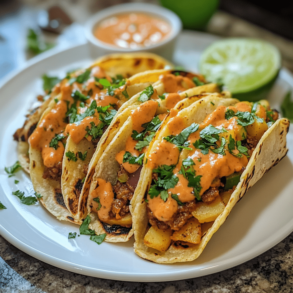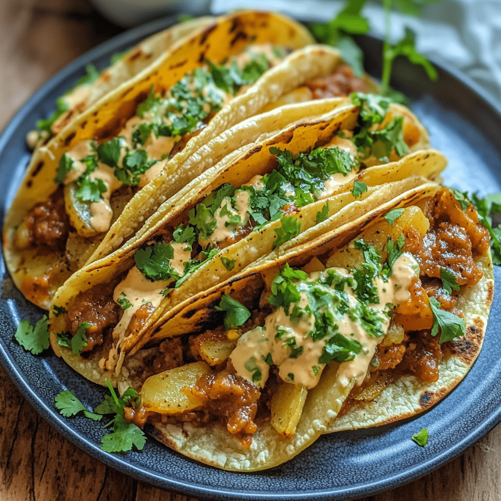 Crispy Potato & Refried Bean Tacos bring together the earthy richness of golden potatoes and the smooth, savory goodness of refried beans. The potatoes are crispy on the outside, tender on the inside, while the refried beans provide a comforting, creamy element to the dish. When topped with fresh toppings like shredded lettuce, salsa, guacamole, and a drizzle of tangy crema, these tacos become a flavor-packed feast that’s sure to please vegetarians and meat-eaters alike.