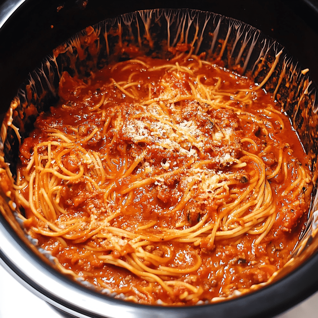 - Pasta: The dry spaghetti is added directly into the Crock Pot, allowing it to cook in the sauce and absorb all the flavors as it cooks. This eliminates the need to pre-cook the pasta.