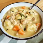 - Hearty and Satisfying: With tender chicken, vegetables, and pillowy dumplings, this dish is filling and perfect for a family meal.