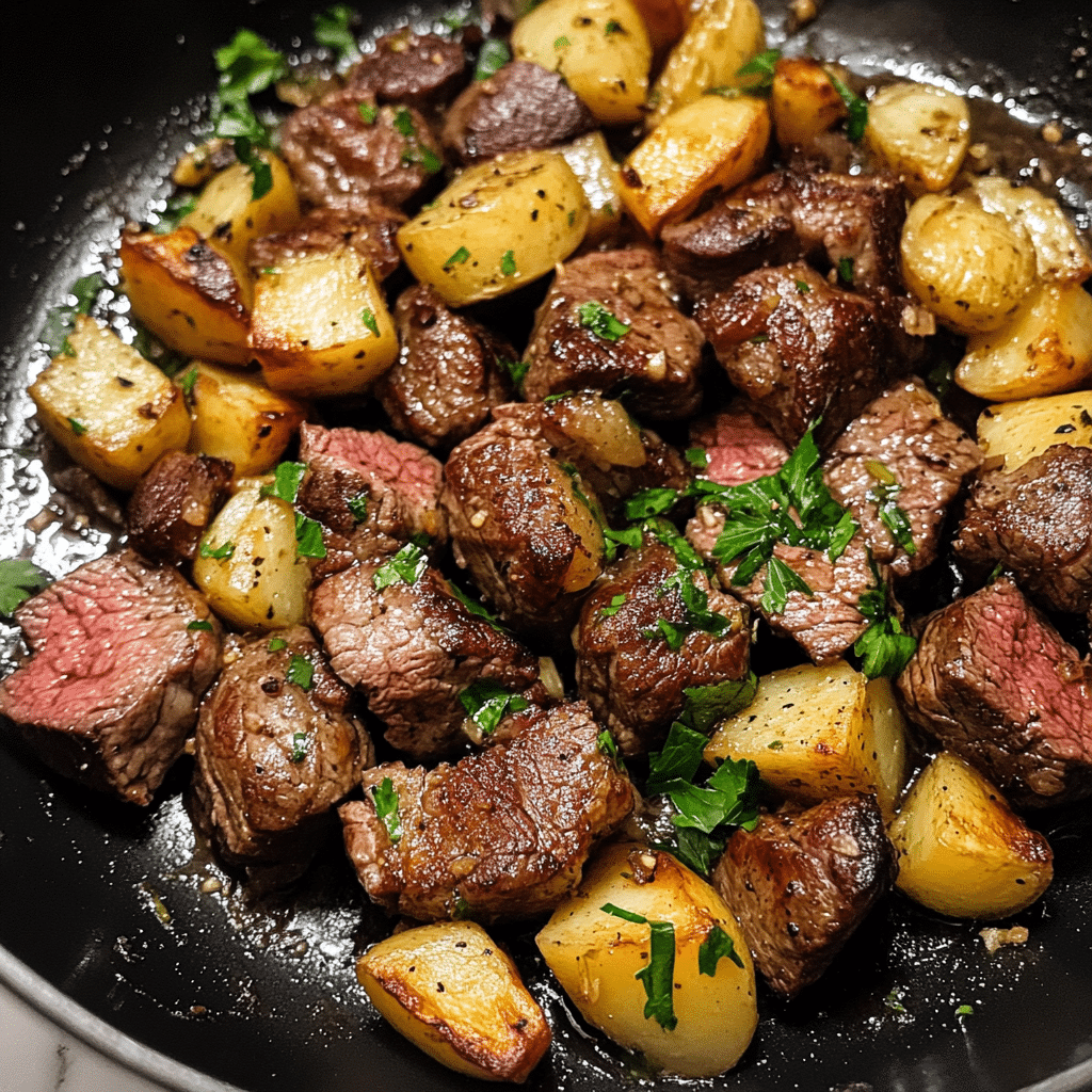 This dish is perfect as a standalone main course. Serve it alongside a simple green salad or roasted vegetables to round out the meal. The crispy potatoes and juicy steak bites provide plenty of substance to satisfy your hunger.