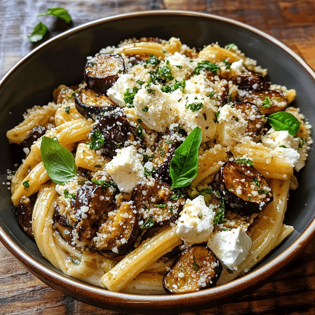 Perfect for vegetarians, vegans (with a simple tweak), or anyone who enjoys Mediterranean cuisine, this dish is a surefire hit. The combination of roasted eggplant, garlic, tomatoes, olives, and feta creates a wonderfully comforting yet vibrant flavor profile that pairs beautifully with your favorite pasta.