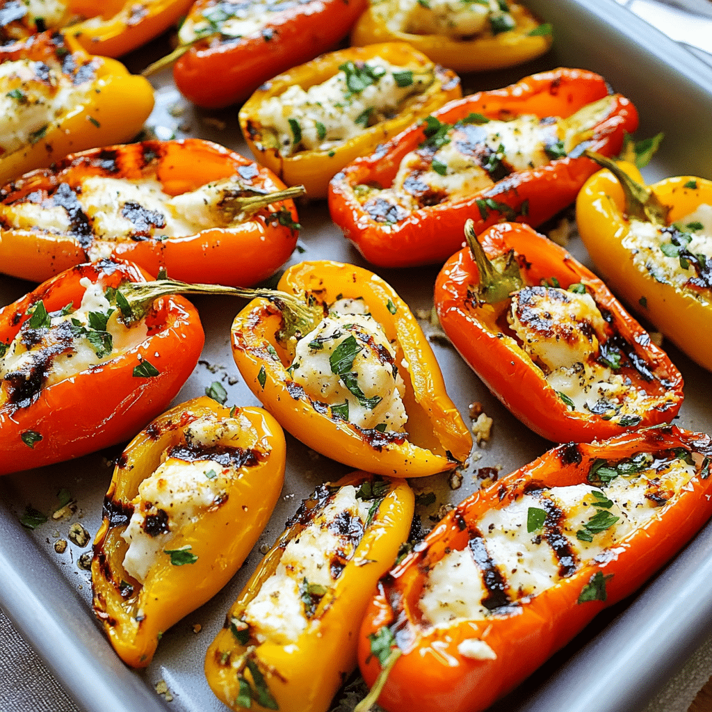 Grilled Mini Sweet Peppers with Goat Cheese are not only visually stunning, but they also offer an irresistible balance of flavors. The sweetness of the mini peppers, combined with the richness of goat cheese, creates an appetizer that will have your guests coming back for more. The grill adds an extra depth of flavor, making these little bites a perfect choice for summer cookouts, barbecues, or anytime you want a fresh and flavorful dish.