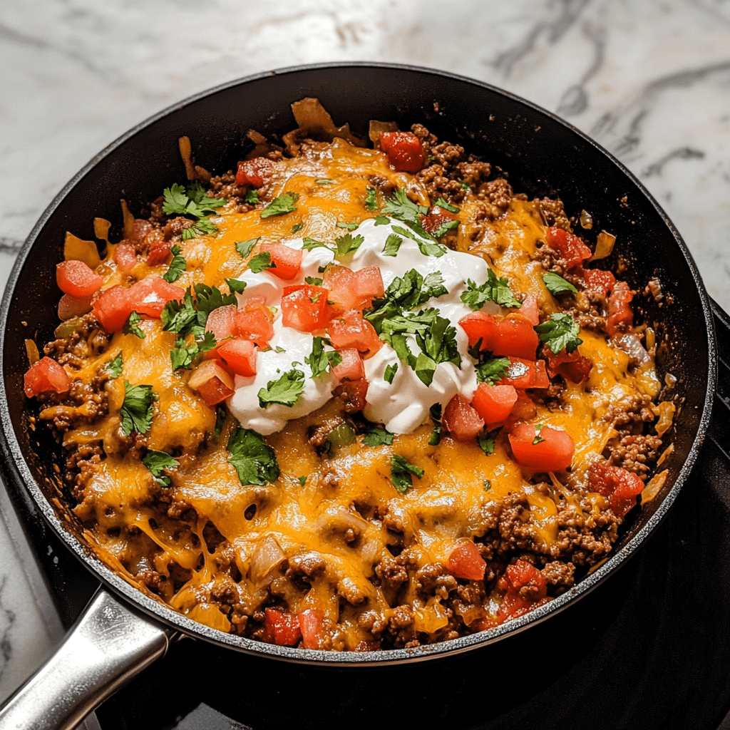 - Cheesy Beef Burrito Skillet: Layer extra cheese on top of the skillet and place it under the broiler for 1-2 minutes to get a crispy, cheesy top.