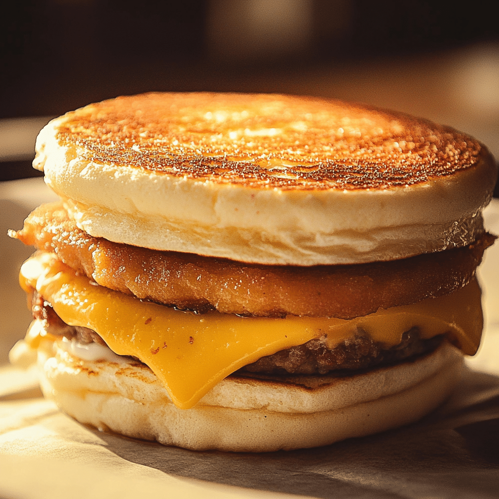 What makes this recipe truly special is the homemade pancake buns, which are infused with little pockets of syrup that create the perfect balance of sweet and savory. The breakfast beef sausage adds a flavorful, savory depth, and the melted cheese ties everything together. Whether you’re serving it for a special weekend breakfast or a fun twist on your morning routine, Homemade McGriddles are sure to be a hit.