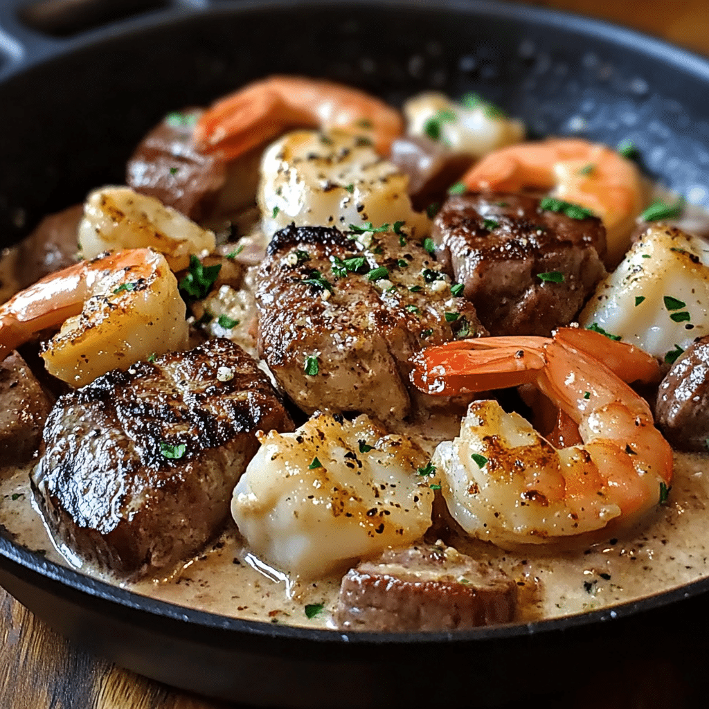 Introduction If you’re looking for a dish that combines the best of both worlds—succulent steak and delicate seafood—look no further than this Steak and Seafood Skillet with Garlic Parmesan Cream