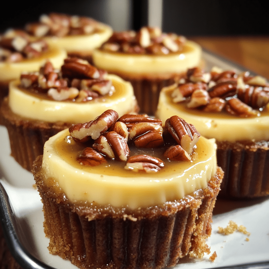 Serve these mini cheesecakes with fresh berries such as raspberries or strawberries. The tartness of the berries provides a refreshing contrast to the rich sweetness of the pecan topping.