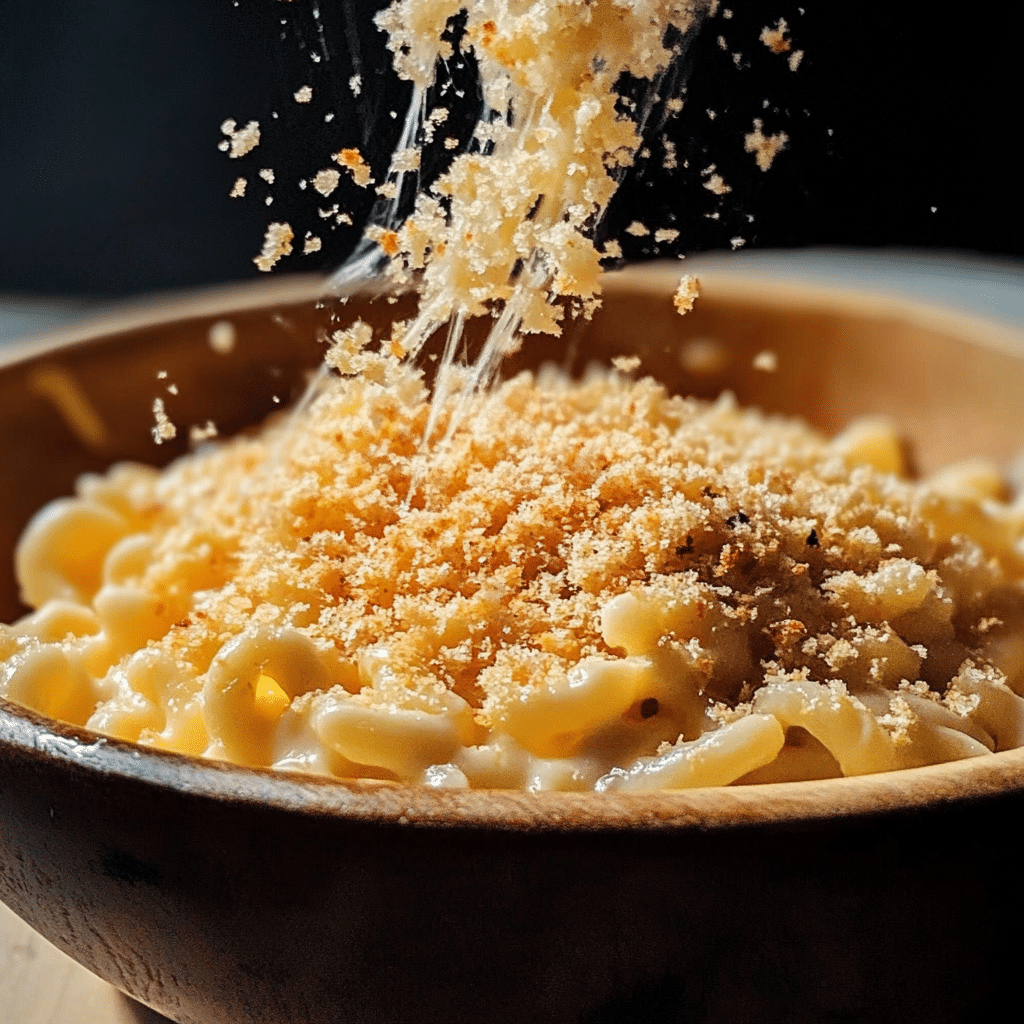 - Top with Crispy Panko: Spoon the cheesy pasta into a serving dish or individual bowls. Sprinkle the toasted panko breadcrumbs evenly over the top to create a crispy, golden crust.