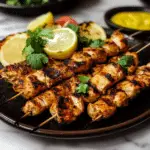 - Garnish: Sprinkle fresh parsley or cilantro over the chicken skewers for a pop of color and added flavor. Serve with lemon wedges, garlic sauce, or tahini on the side. You can also pair the skewers with grilled vegetables, pita bread, or a fresh salad for a complete meal.