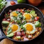 Skillet Huevos Rancheros offers a vibrant and flavorful breakfast, with crispy tortillas topped with a rich tomato-based ranchero sauce, perfectly fried eggs, and a variety of toppings. The combination of the crunchy tortillas, savory sauce, and runny yolks creates a satisfying balance of textures—crispy, creamy, and spicy with every bite. This dish is easily customizable: add black beans, avocado, or crumbled queso fresco, or swap the eggs for scrambled eggs or a poached version. For extra flavor, consider garnishing with fresh cilantro, a squeeze of lime, or a dollop of sour cream. Try making this Skillet Huevos Rancheros for a bold and delicious breakfast, and don’t forget to share your creations on social media!