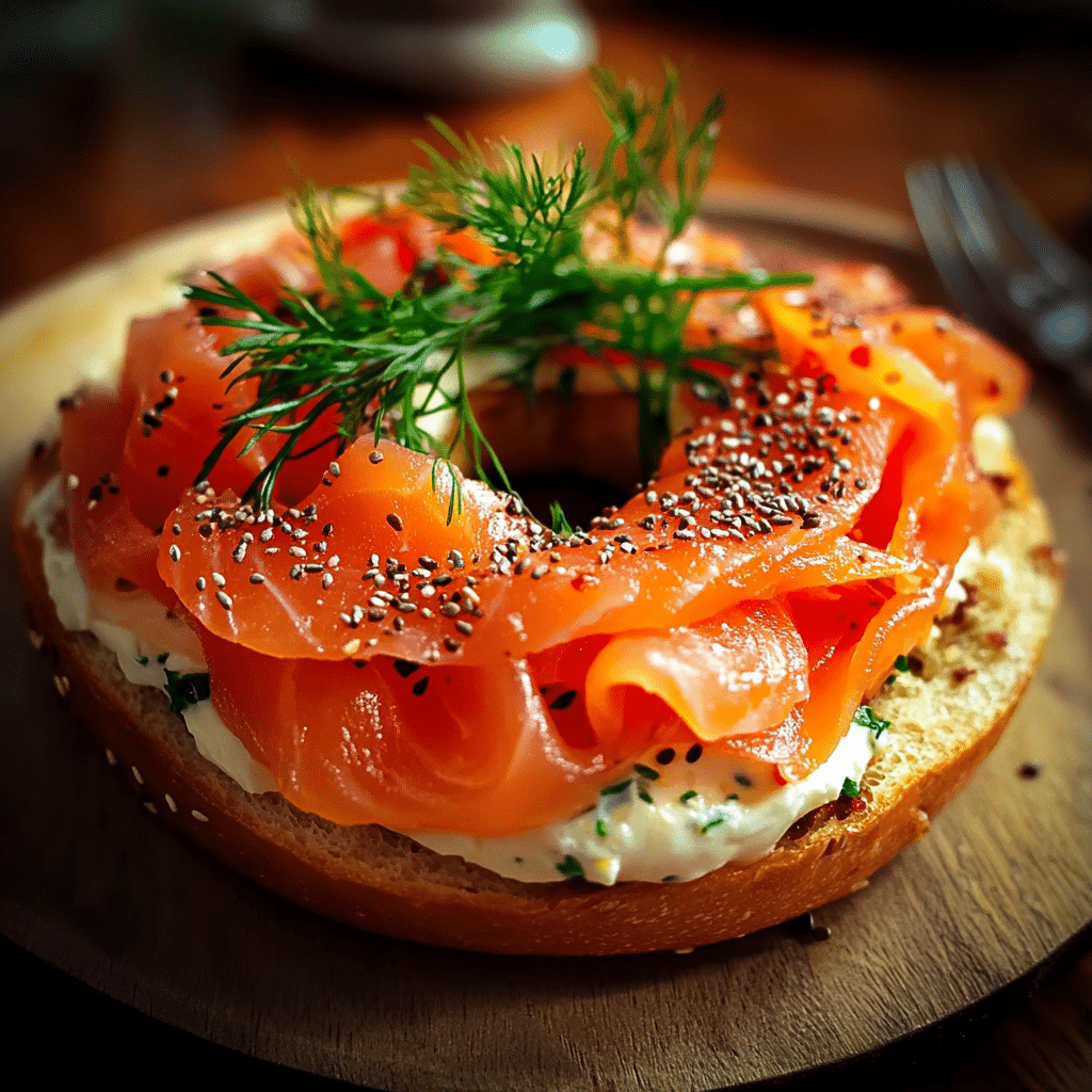 What makes this recipe special is its versatility and elegance. You can easily adjust the toppings to suit your preferences—whether it’s adding capers, red onion, or a dash of pepper. The combination of textures, from the chewy bagel to the smooth cream cheese and tender smoked salmon, is nothing short of perfect.