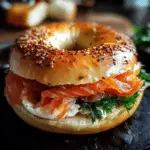 Smoked Salmon Bagel offers a delicious and sophisticated breakfast, with a toasted bagel topped with creamy cream cheese, silky smoked salmon, and a variety of flavorful toppings. The combination of the soft, slightly tangy cream cheese, rich smoked salmon, and the chewy, crisp bagel creates a perfect balance of textures and flavors—creamy, savory, and satisfying with every bite. This dish is easily customizable: add capers, thinly sliced red onions, or fresh dill, or swap the smoked salmon for another fish like lox or trout. For extra flavor, consider a squeeze of lemon juice or a sprinkle of black pepper. Try making this Smoked Salmon Bagel for a light yet indulgent breakfast, and don’t forget to share your creations on social media!
