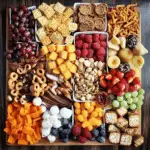 - Can I make the snack board in advance? Yes, you can prepare most elements of the board ahead of time, especially the dips, nuts, and cheese. However, try to assemble the fresh fruit and delicate items closer to the time you’ll be serving.