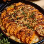 Sweet Potatoes Au Gratin is a comforting, rich, and creamy side dish that takes the classic gratin recipe and gives it a flavorful twist with the natural sweetness of sweet potatoes. This dish is the perfect combination of tender, thinly sliced sweet potatoes baked in a velvety cheese sauce and topped with a golden, crispy crust. It’s indulgent enough to be served on holidays or special occasions, yet simple enough to become a favorite weeknight dinner side.
