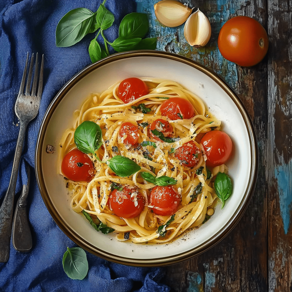 Whether you’re a pasta lover, a fan of Mediterranean flavors, or simply seeking a quick yet delicious meal, Tomato & Basil Aglio e Olio is sure to become a favorite in your recipe repertoire. With only a handful of ingredients, this dish can be made in less than 30 minutes, making it a perfect choice for busy days when you want a meal that feels special.
