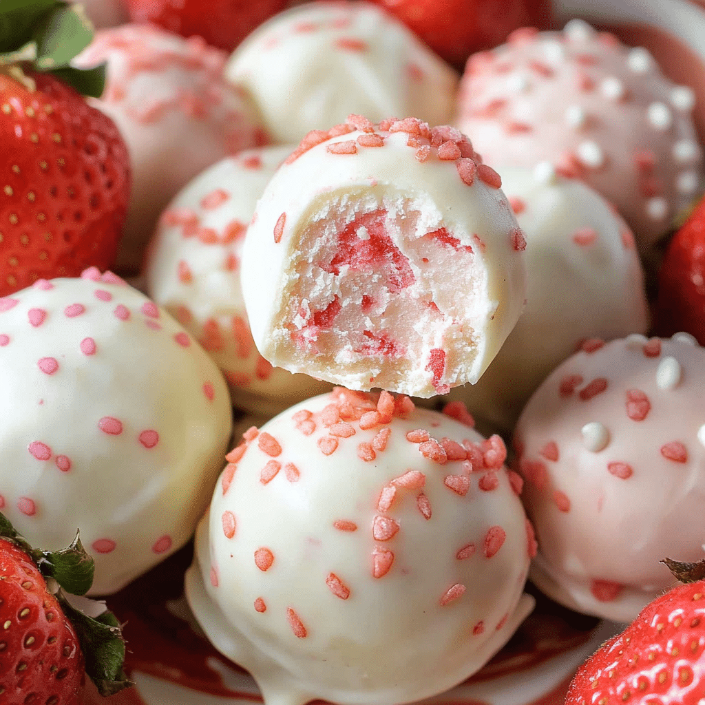 White Chocolate Strawberry Truffles are a perfect blend of sweet, creamy, and fruity flavors, making them a standout treat for any occasion. Whether you’re serving them at a special event, gifting them to loved ones, or enjoying them as a personal indulgence, these truffles will always be a hit. With their simple preparation, customizable options, and delicious taste, these truffles are sure to become a favorite treat in your holiday or year-round dessert repertoire. Try making them today, and enjoy the rich, luxurious taste of white chocolate and strawberry in every bite.
